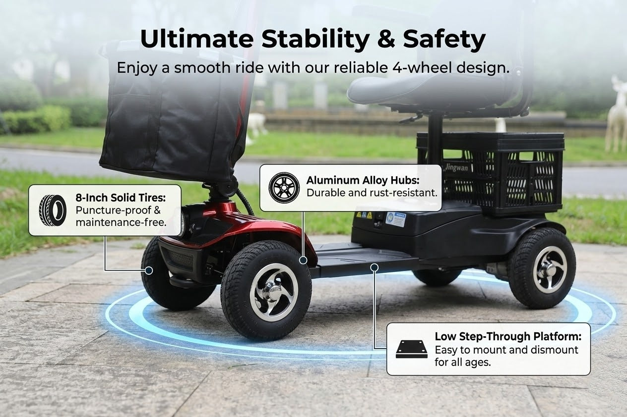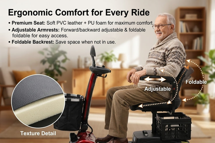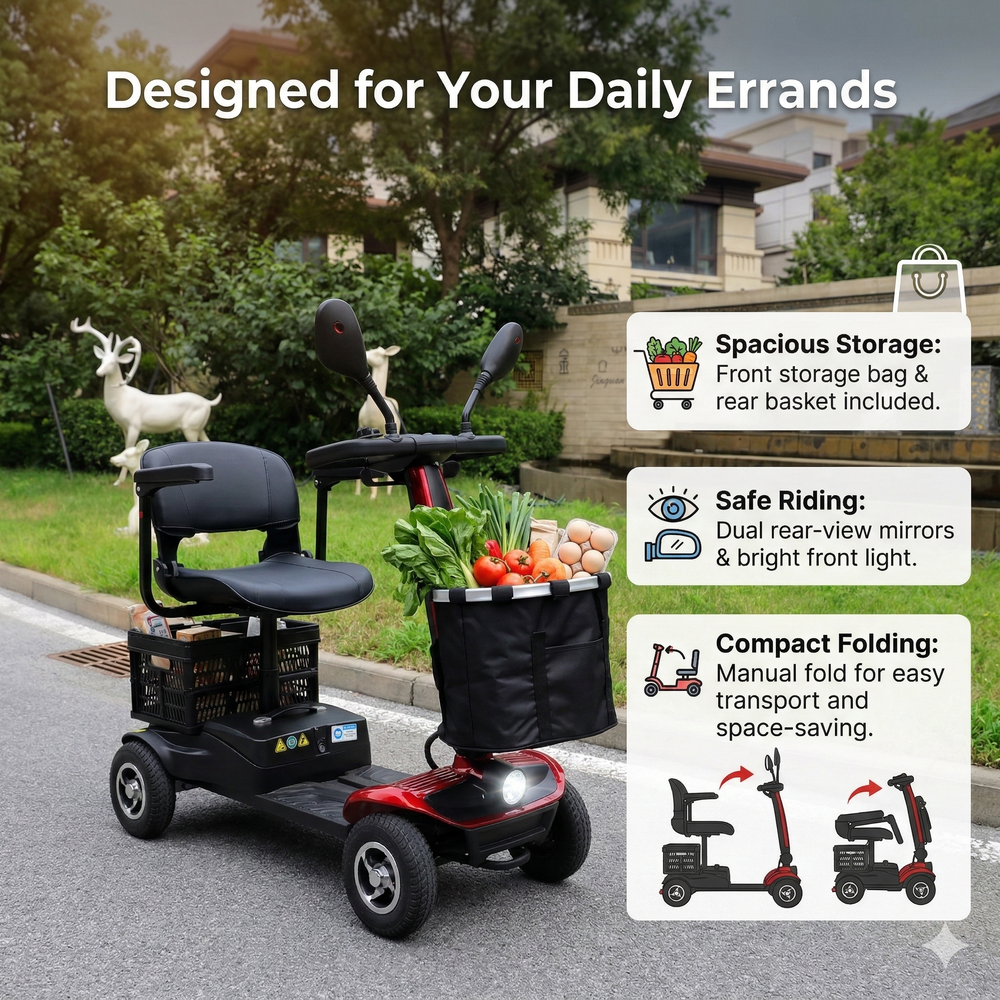 Perfect for seniors or riders looking for a safe, practical, and low-maintenance mobility scooter for daily transportation.